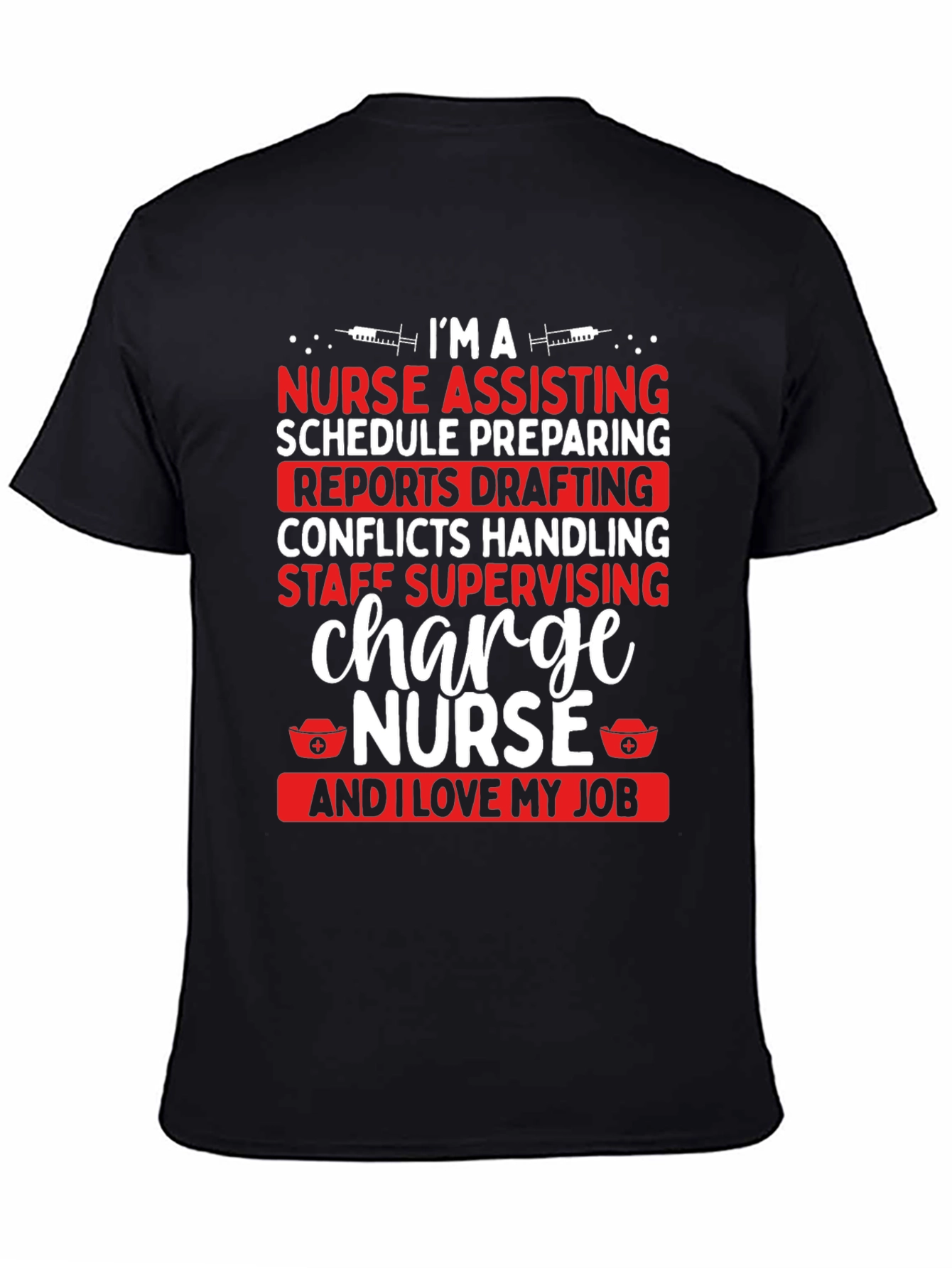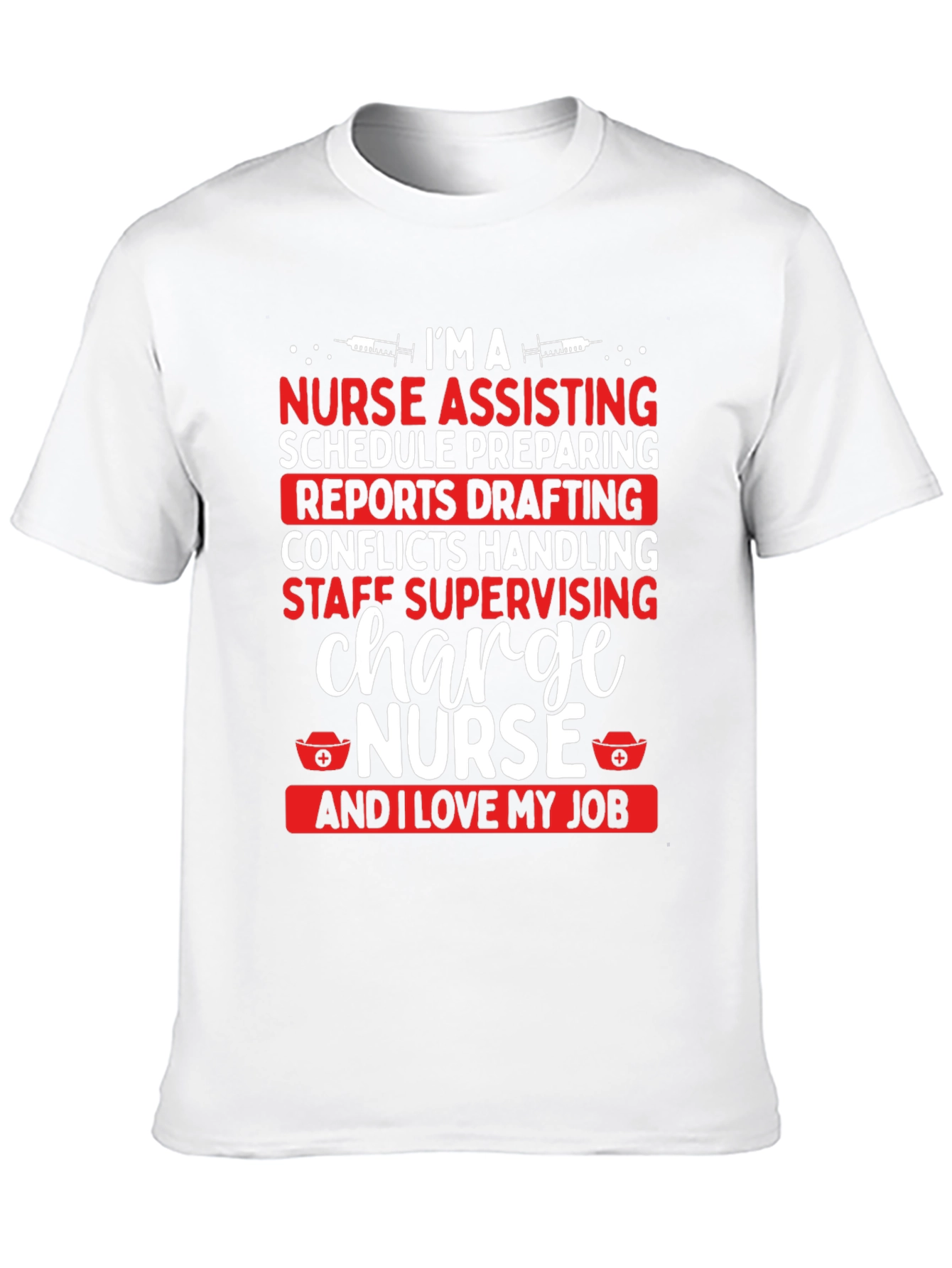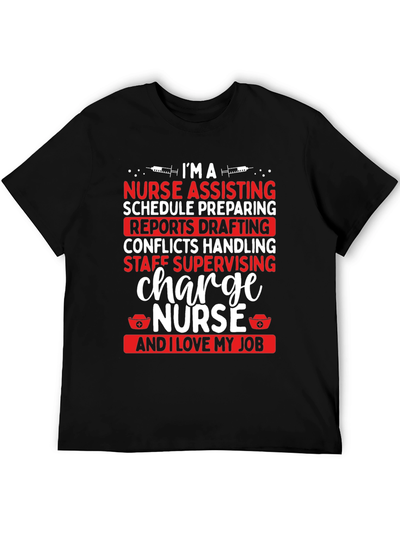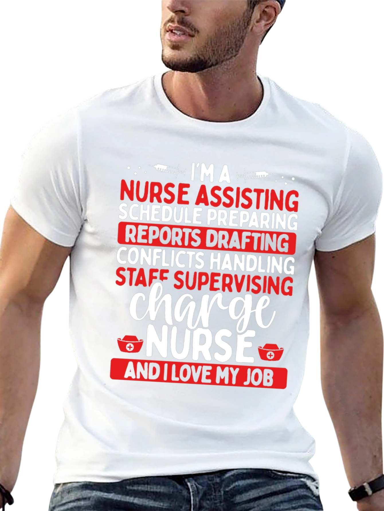 Presentamos esta llamativa camiseta negra, perfecta para las enfermeras dedicadas. El diseño presenta un texto en negrita de color rojo y blanco que enumera las muchas responsabilidades de una enfermera, desde ayudar y programar hasta manejar conflictos y supervisar al personal. Un gráfico divertido con gorros de enfermera añade un toque especial. Hecha de un material suave y cómodo, ideal para llevarla durante largos turnos o en el tiempo libre. Muestra tu orgullo por tu profesión con esta prenda única y versátil. ¡Ideal para regalar a esa enfermera especial en tu vida!