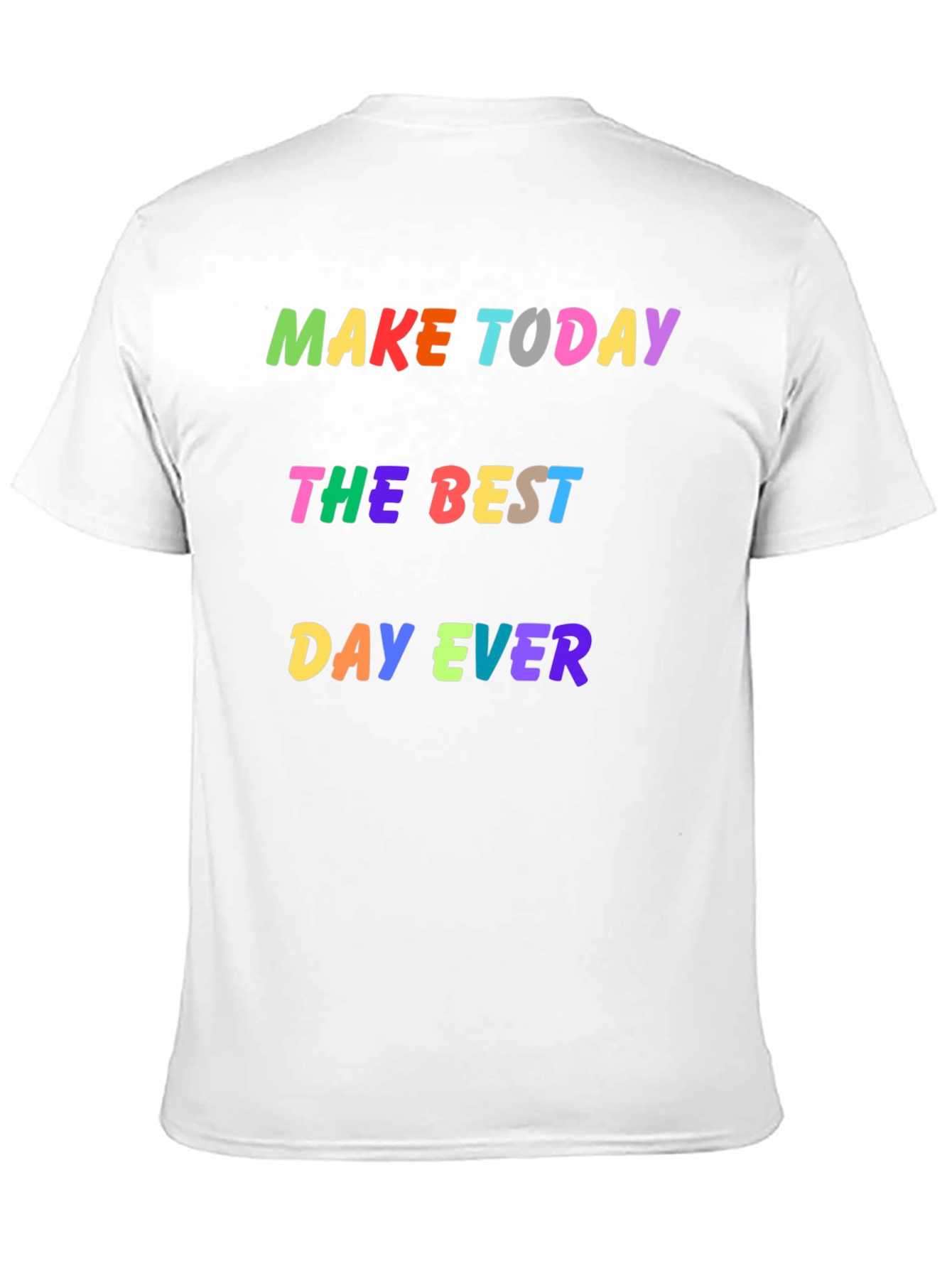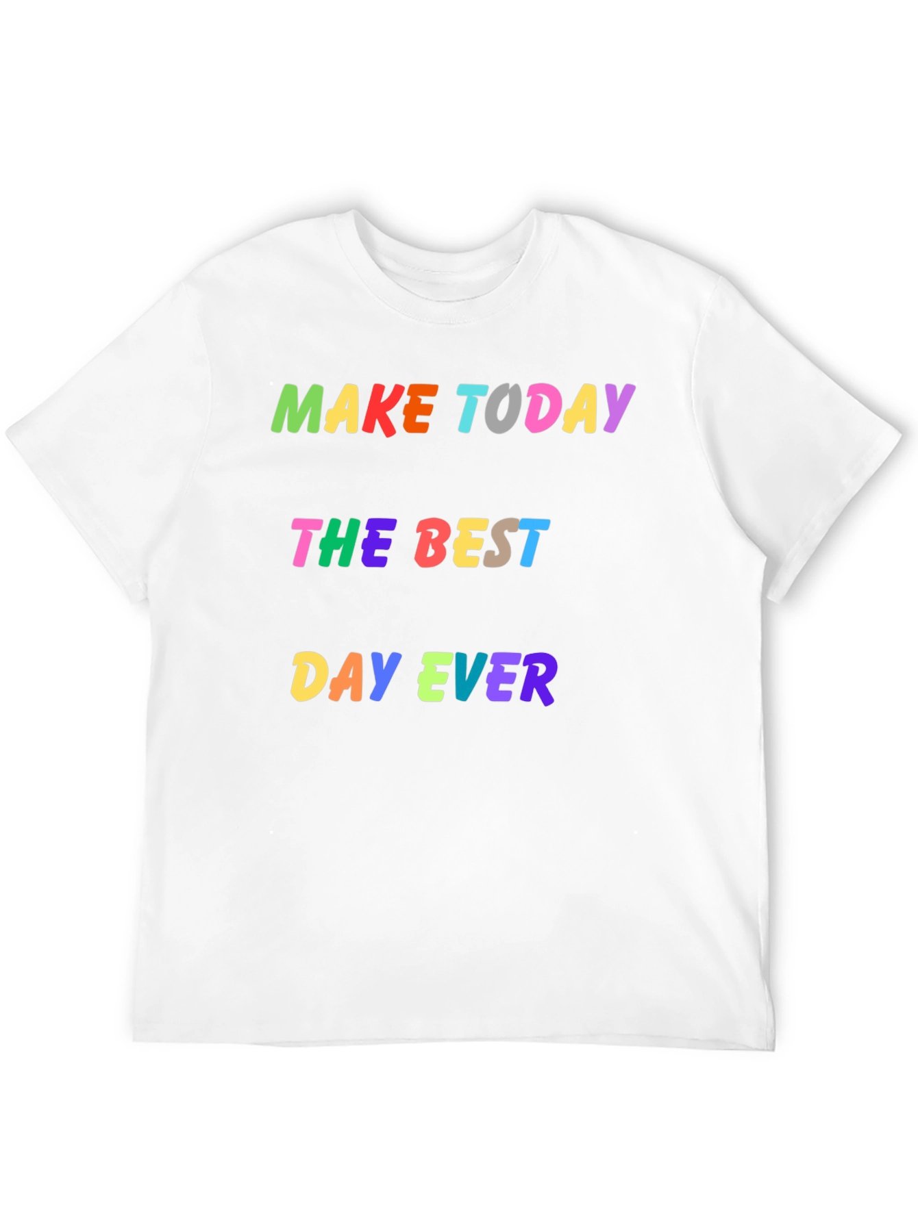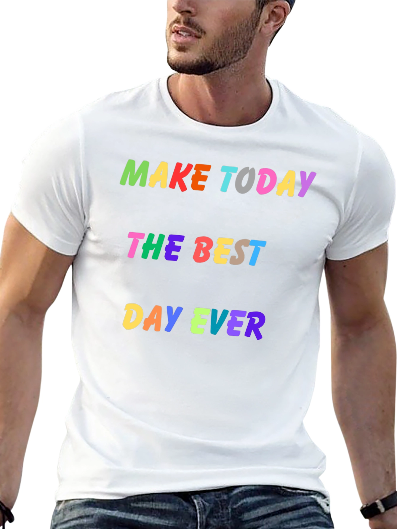 Luce esta moderna camiseta negra con un mensaje inspirador y colorido. La camiseta presenta la frase "MAKE TODAY THE BEST DAY EVER" en vibrantes colores del arcoíris, lo que la convierte en una prenda llamativa y optimista. Hecha de tela suave y cómoda, esta camiseta de manga corta es ideal para el uso diario, ya sea para relajarte en casa, salir con amigos o ir al gimnasio. Su diseño versátil combina fácilmente con jeans, pantalones cortos o faldas. El ajuste clásico ofrece comodidad y libertad de movimiento. Añade un toque de positividad a tu armario con esta camiseta única y motivadora. ¡Un regalo perfecto para aquellos que aman difundir alegría y buenas vibraciones!