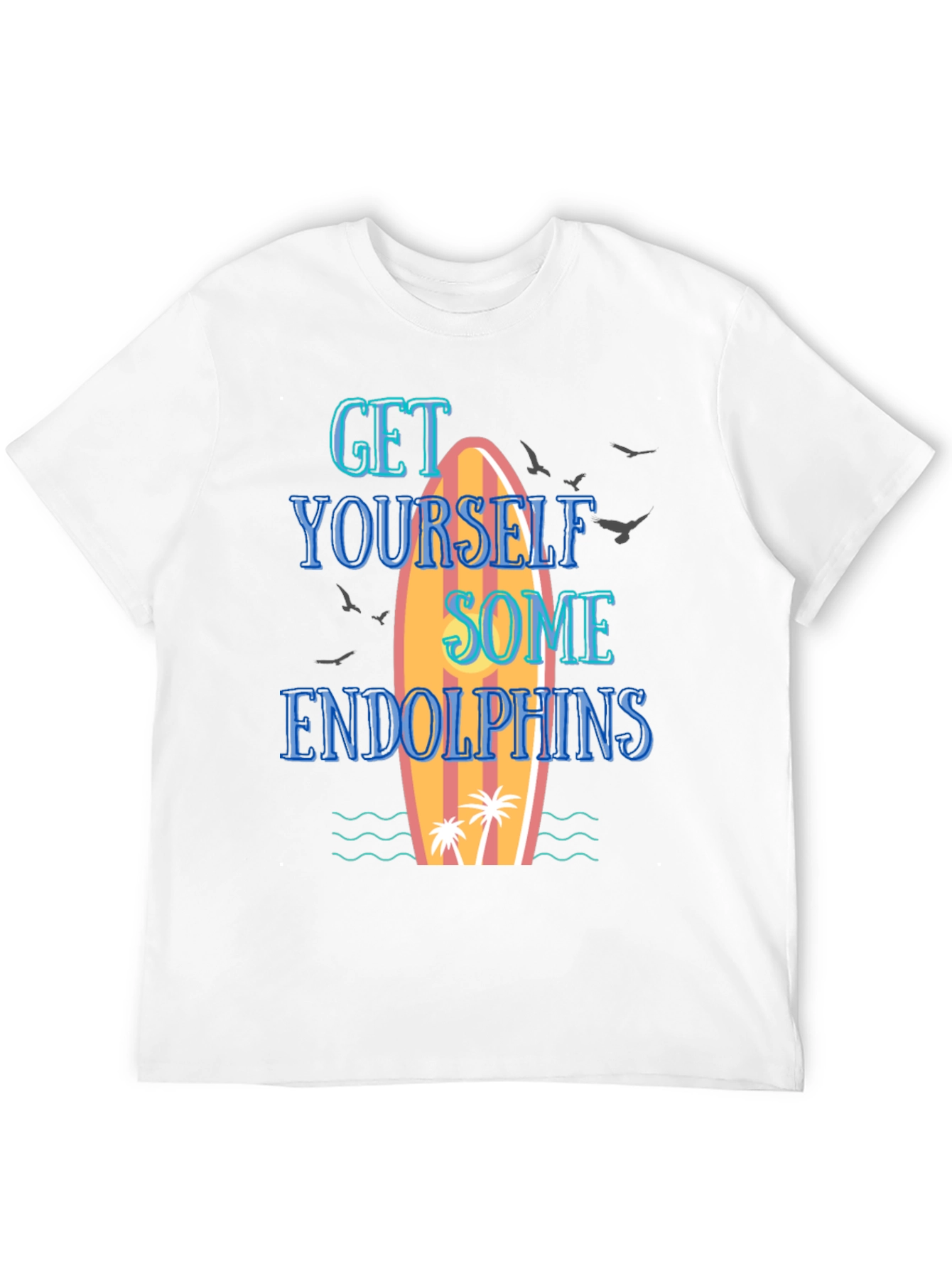 Disfruta del verano con esta camiseta negra de manga corta para hombre. El diseño vibrante presenta una tabla de surf con palmeras y olas, acompañada del texto "Get Yourself Some Endolphins". Ideal para un look casual y relajado, perfecta para usar en la playa, de vacaciones o simplemente para un día soleado. Su estilo único y divertido la convierte en una prenda imprescindible en tu armario. Fabricada con materiales de alta calidad para garantizar comodidad y durabilidad. Destaca tu estilo con esta prenda original y llena de energía positiva.